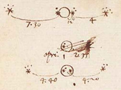 Satélites de Júpiter dibujados por Galileo. Fuente de la imagen.