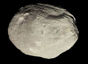 1. Vesta es el segundo objeto con más masa del cinturón de asteroides, y tiene un diámetro de 530 km. En ocasiones es posible observarlo a simple vista, si se sabe donde buscar pues tiene un brillo muy bajo. Se parece a una esfera, pero no mucho pues tiene un hueco y un bulto que lo deforman basante (ver imagen). Fue descubierto en 1807.
